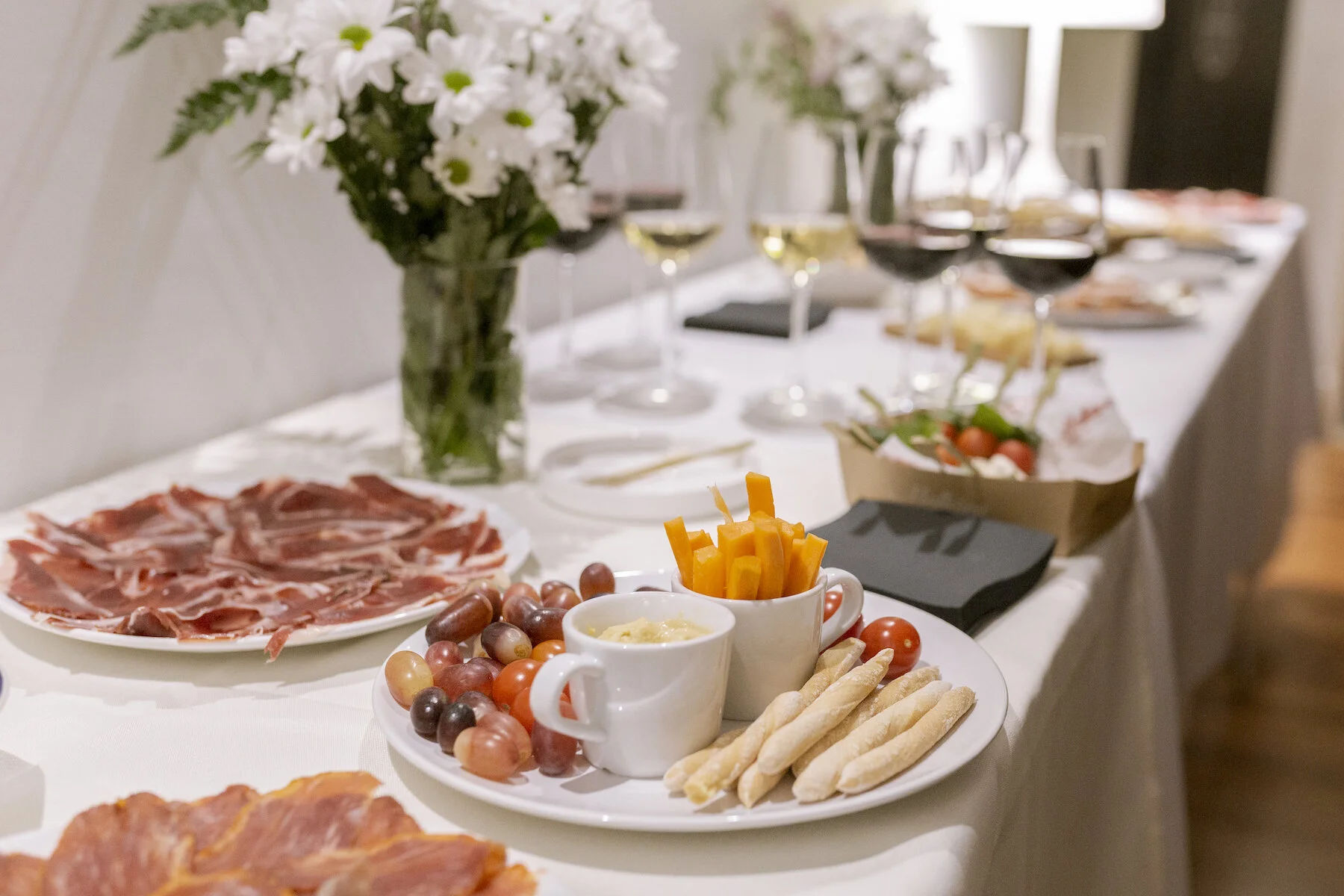Terminamos en torno a las 21h, tras unos vinos de confraternización y un aperitivo. Servimos tinto y blanco, ambos gaditanos, quesos de Cerdeña y Valencia, jamón y lomo ibérico de Huelva, cecina de León y aperitivos vegetales.
