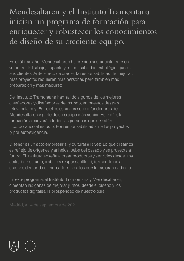Mendesaltaren y el Instituto Tramontana inician un programa de formación para enriquecer y robustecer los conocimientos de diseño de su creciente equipo.